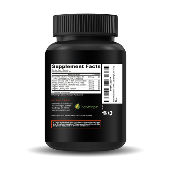 Cistanche+ is a comprehensive supplement to help amplify natural hormone production with proven ingredients for next level performance. Cistanche+ contains high grade Cistanche Tubulosa standardized at 50% Echinacoside and 10% Acetoside, standardized Shilajit extract, Panax Ginseng, and a prebiotic matrix for absorption.*