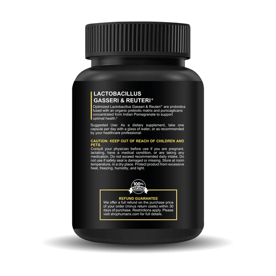 Lactobacillus Gasseri and Reuteri need optimal fuel to do their best work. That’s why we’ve included an organic matrix of prebiotics and Punicaligans from Indian Pomegranate that work as your probiotic power source.*